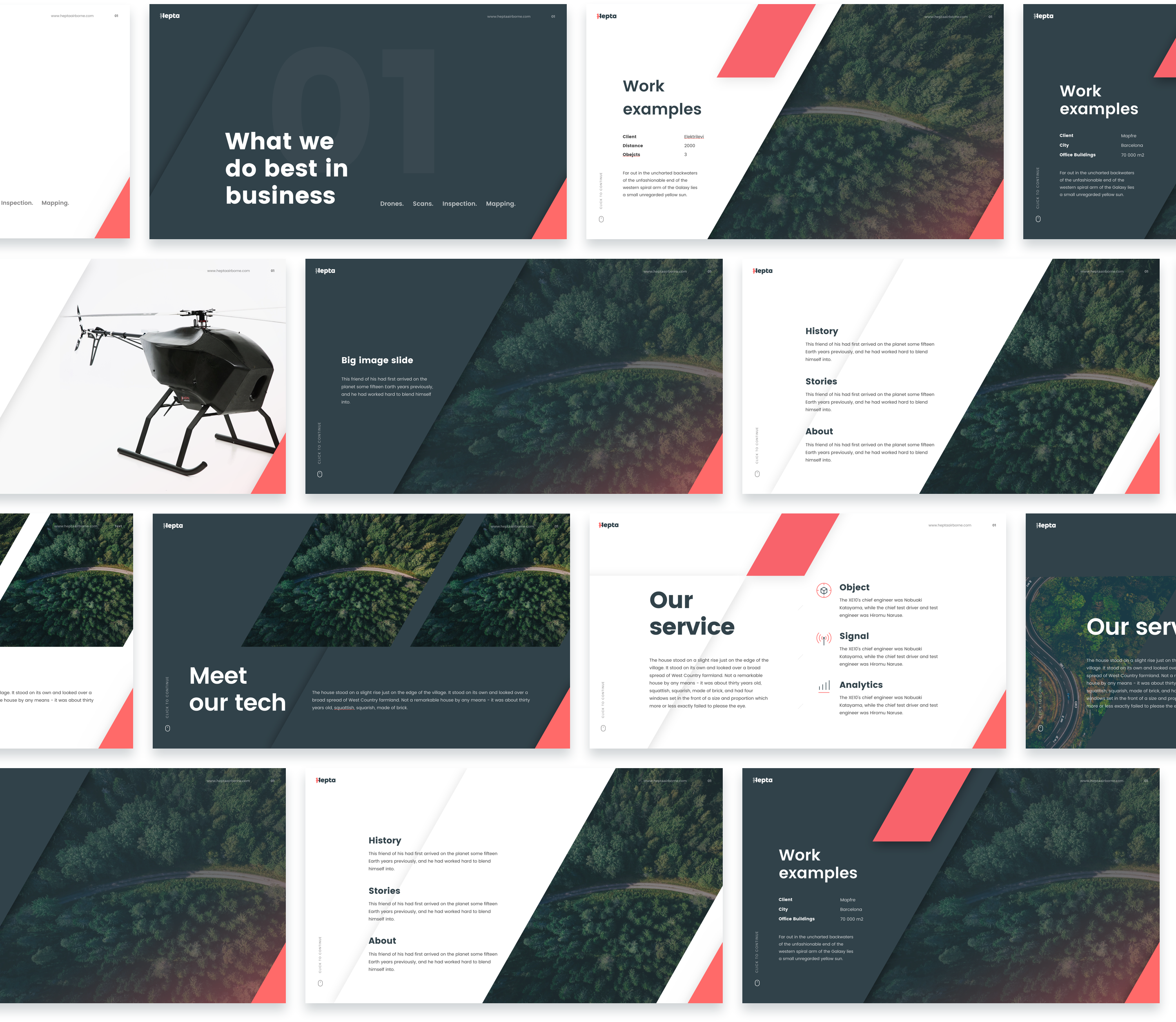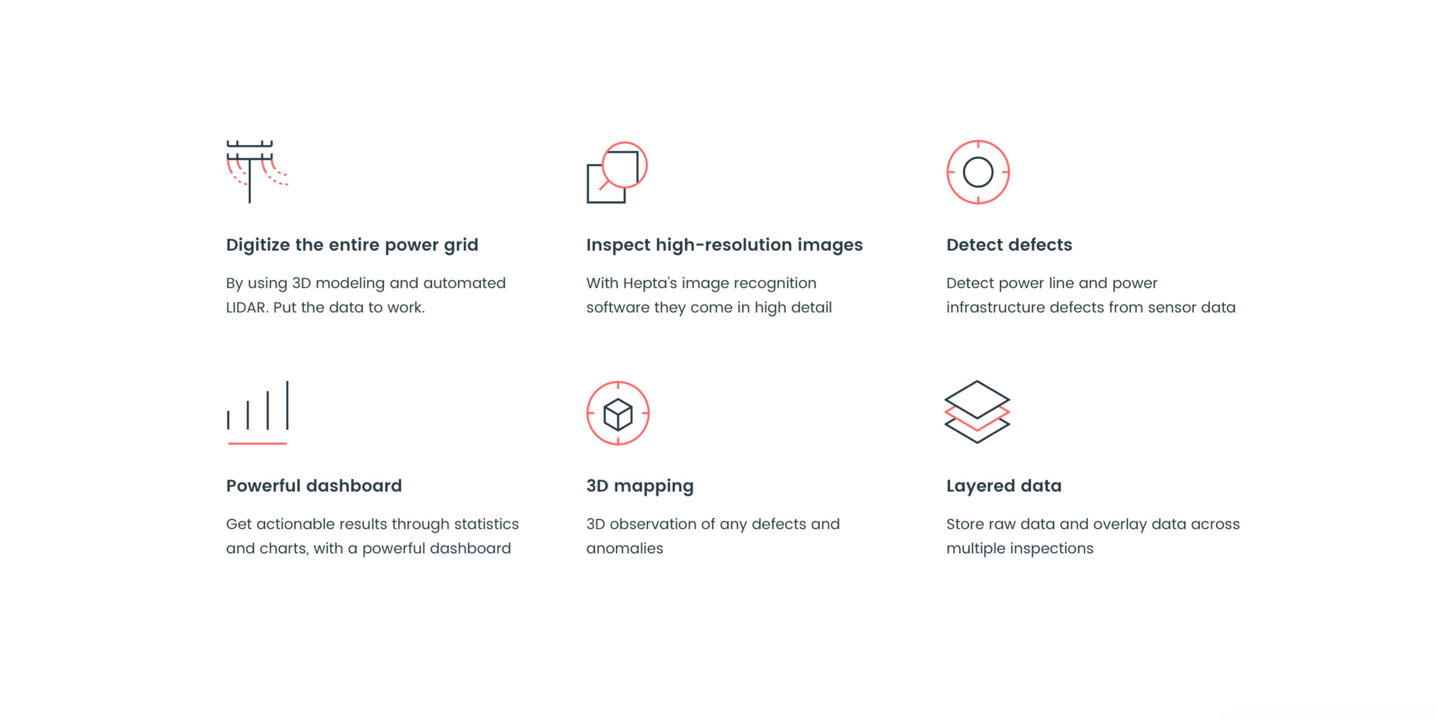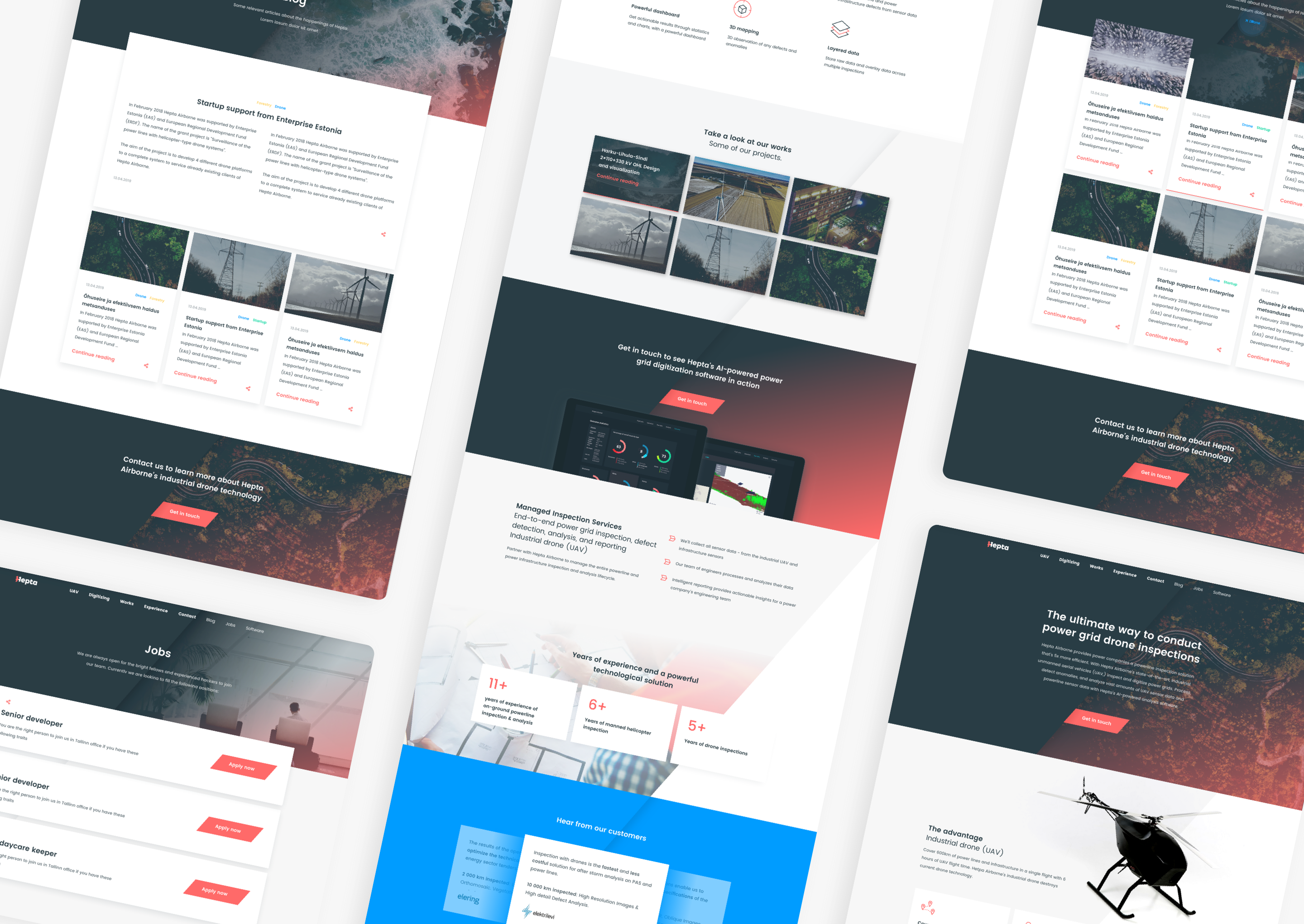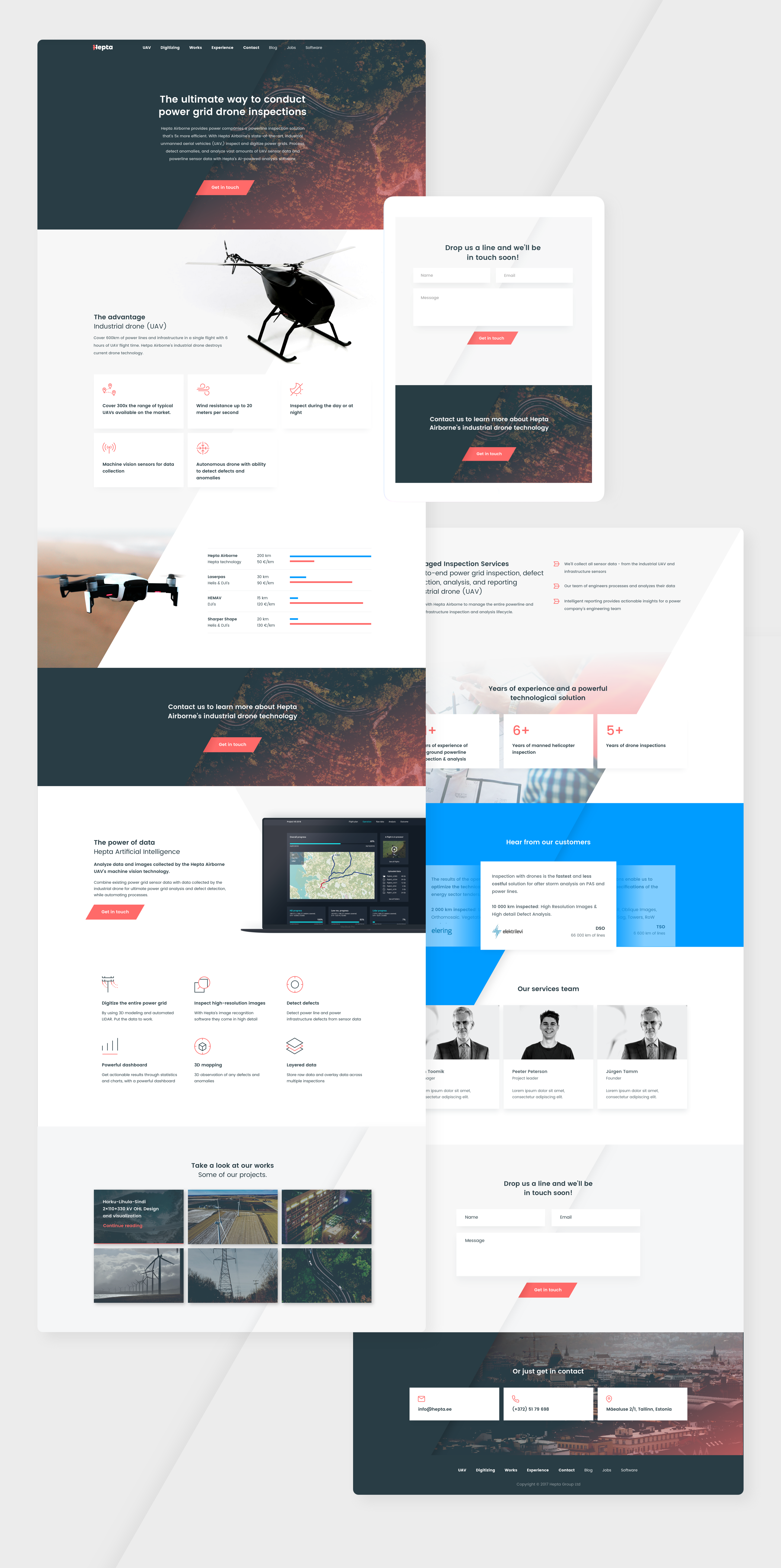 Hepta is a drone inspection and analysis provide. They operate drones that do variety of digitizations, 3D mapping and image capturing to detect any defects in power lines with their own analytics backend. They needed a refreshment of their brand and website.