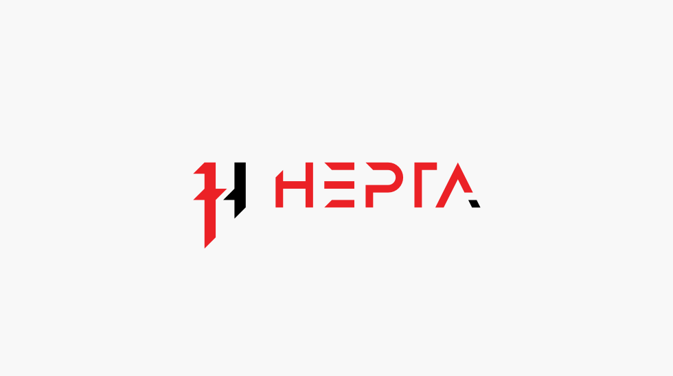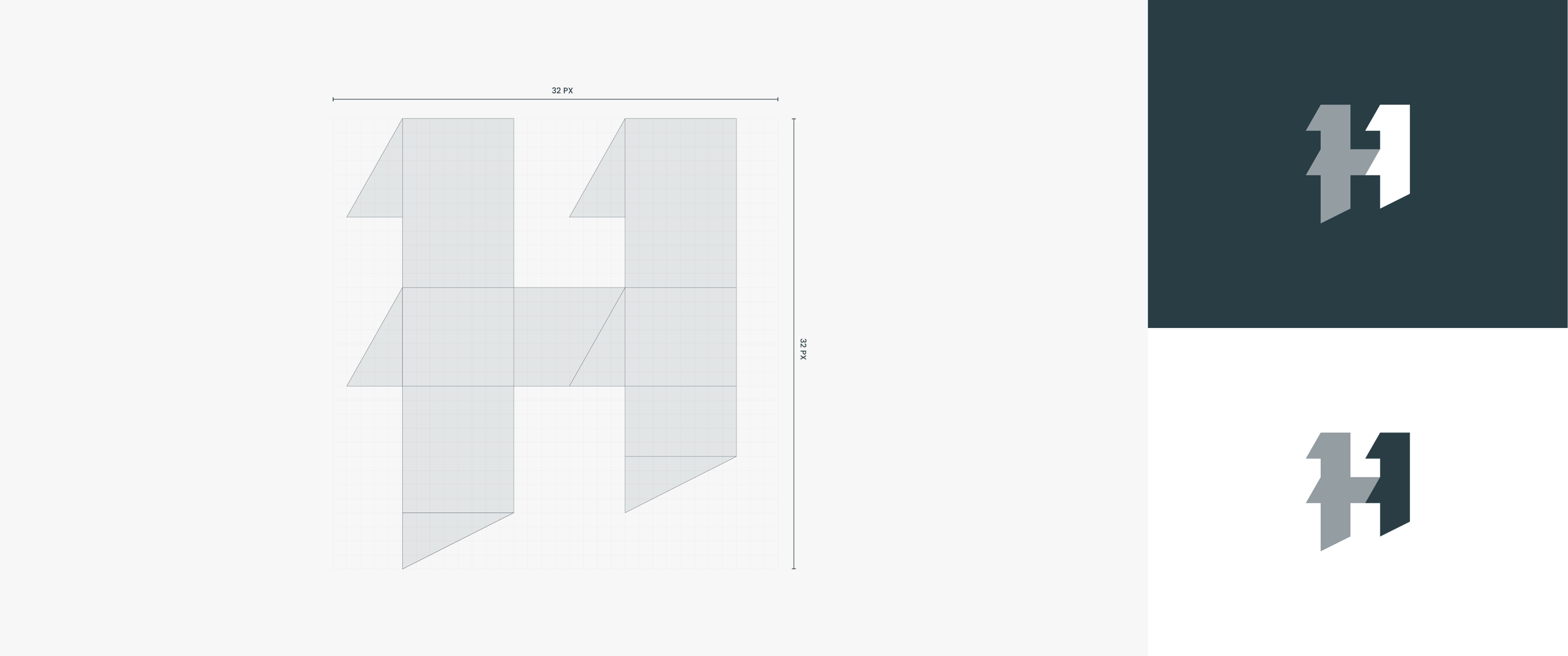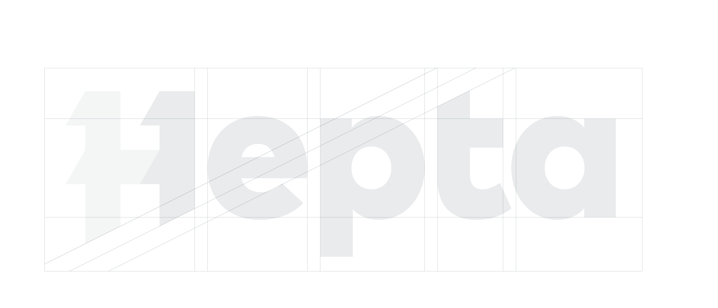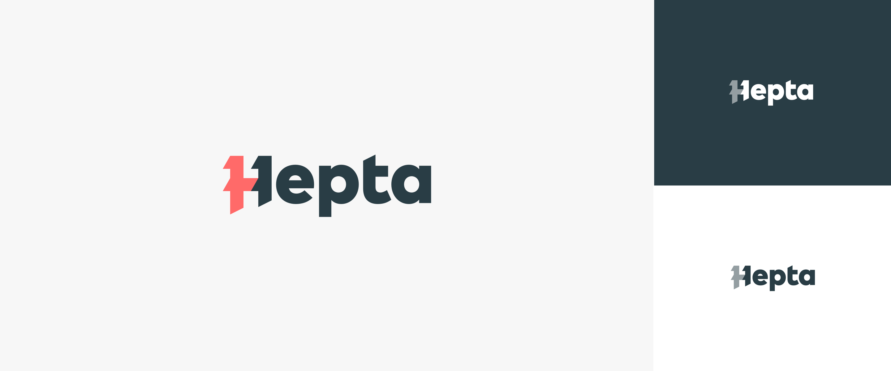 The Hepta logomark is built on a 32×32 px grid for optimal online use. Left side is set either with red or 50% opacity to separate from the rest of the mark.